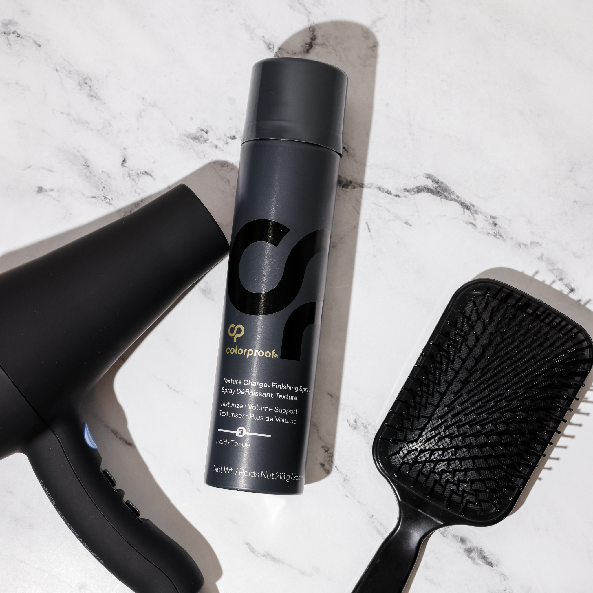 • Creates a charge in the hair fibers causing them to repel for more density, volume and texture