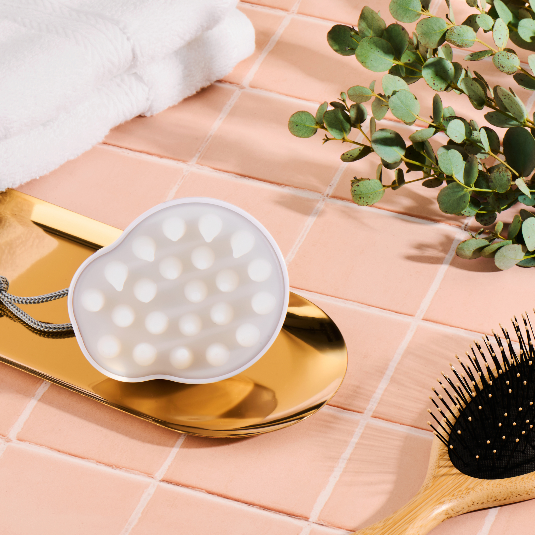 Environmental impurities and product build-up can clog follicles, contributing to dull, lifeless hair and even premature hair loss. With proper care of the scalp and hair follicles, hair can emerge stronger, fuller, and healthier. Our cleansing scalp brush exfoliates, stimulates circulation, and deeply cleans the scalp, allowing hair to flourish.